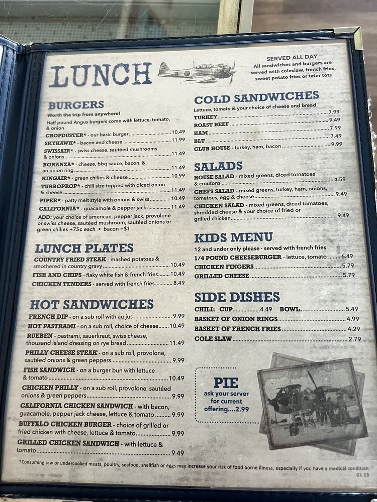 Welcome to the Kingman Airport Cafe, a delightful destination for aviation enthusiasts and food lovers alike. Nestled at 6000 Flightline Dr, Kingman, AZ, this charming cafe serves up a diverse menu that includes mouthwatering burgers and delicious sandwiches, perfect for any craving.